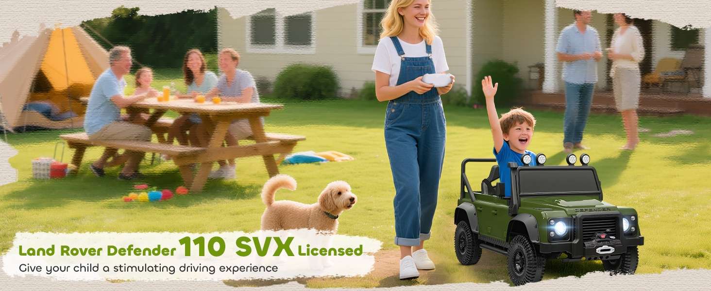 • Official Land Rover Defender 110 SVX license, realistic look for Land Rover Power Wheels
