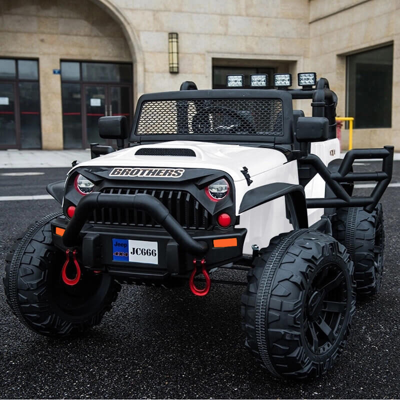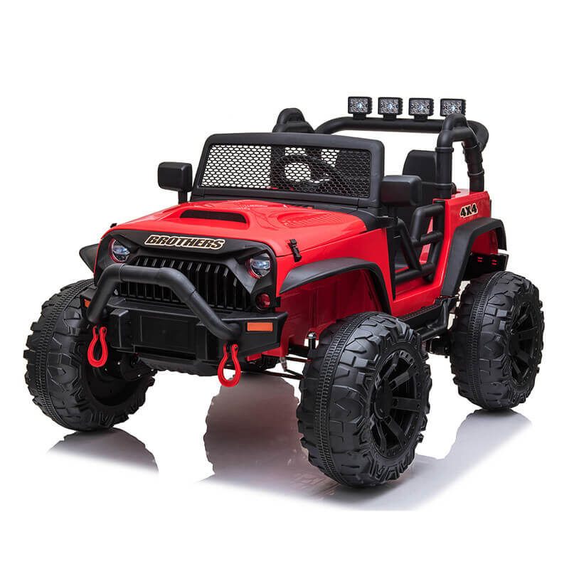 Our upgraded 2 seater ride on car with parental remote control will surely bring your kids endless fun. The remote control ride on jeep car for kids is equipped with a powerful 12V battery, double suspension system, and strong power for kids’ toy cars.