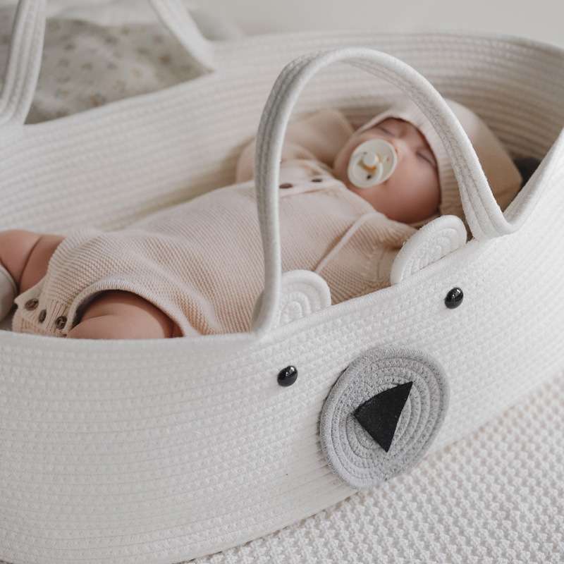 These cute baby baskets are made from natural cotton rope, gentle on your baby’s delicate skin. The convenient handle makes them easy to move around, whether out and about or indoors, ensuring a good night’s sleep for your baby. 💝