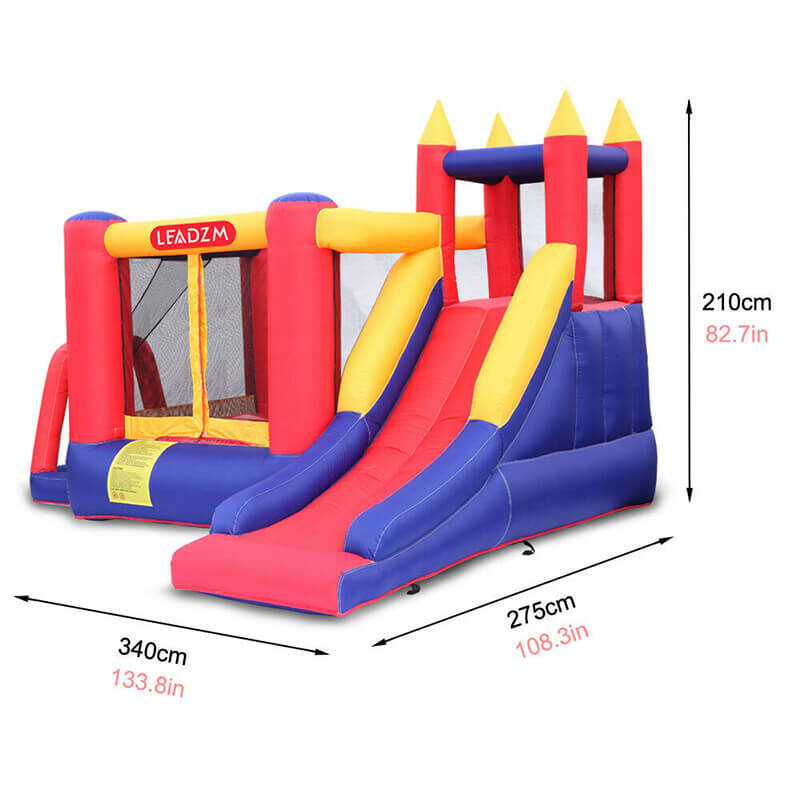 The popular jumpy castle inflatable bounce house allows families to have a good time with their kids. This indoor bounce house provides children with a happy place to play. Just a few minutes to complete the setup of the castle bounce house and fix it with ground stakes. The bouncy castle with slide is easy to fold and move. The use of high-density Oxford cloth and breathable safety net makes the jumpy castle durable and load-bearing up to 250lb.