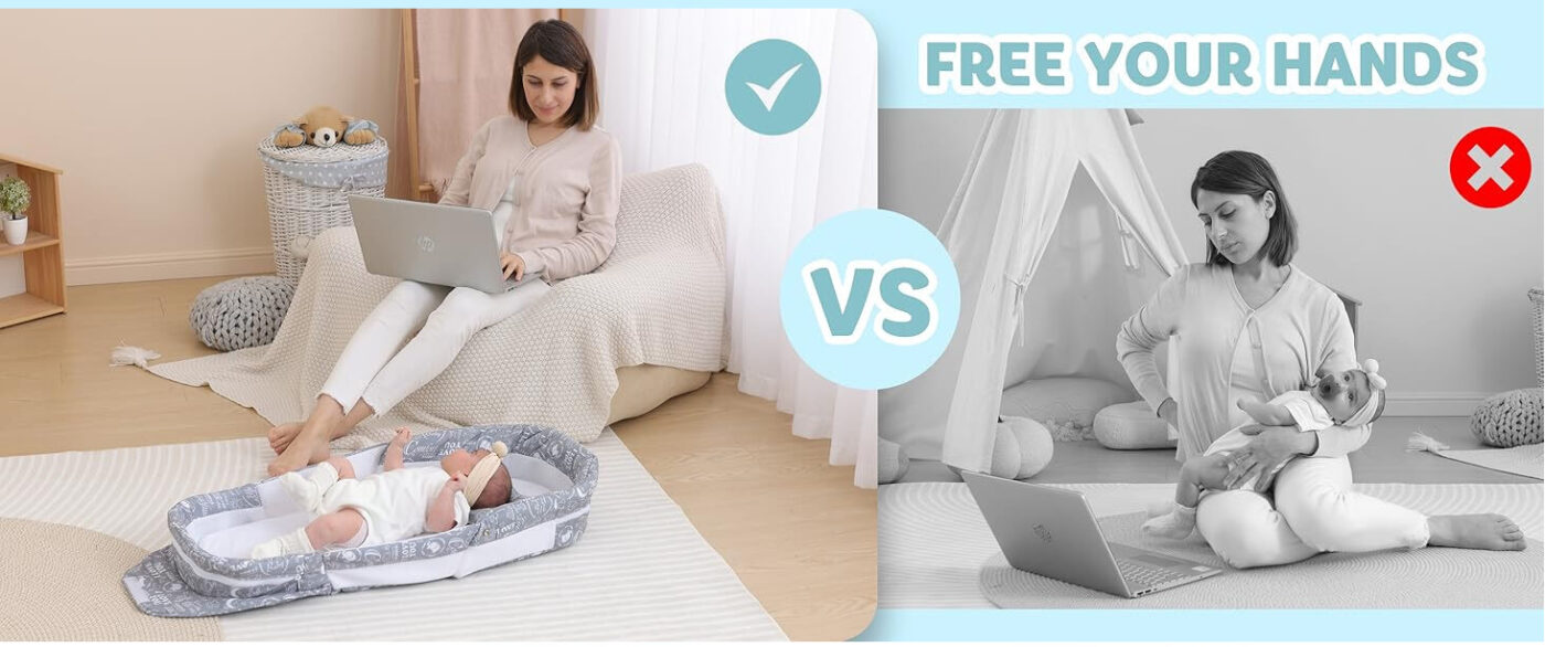 Under your supervision, this lounger gives your baby a soft, familiar space to relax, play, or share bonding time with you.