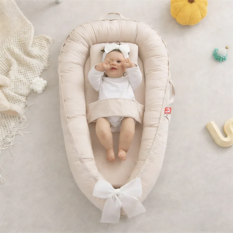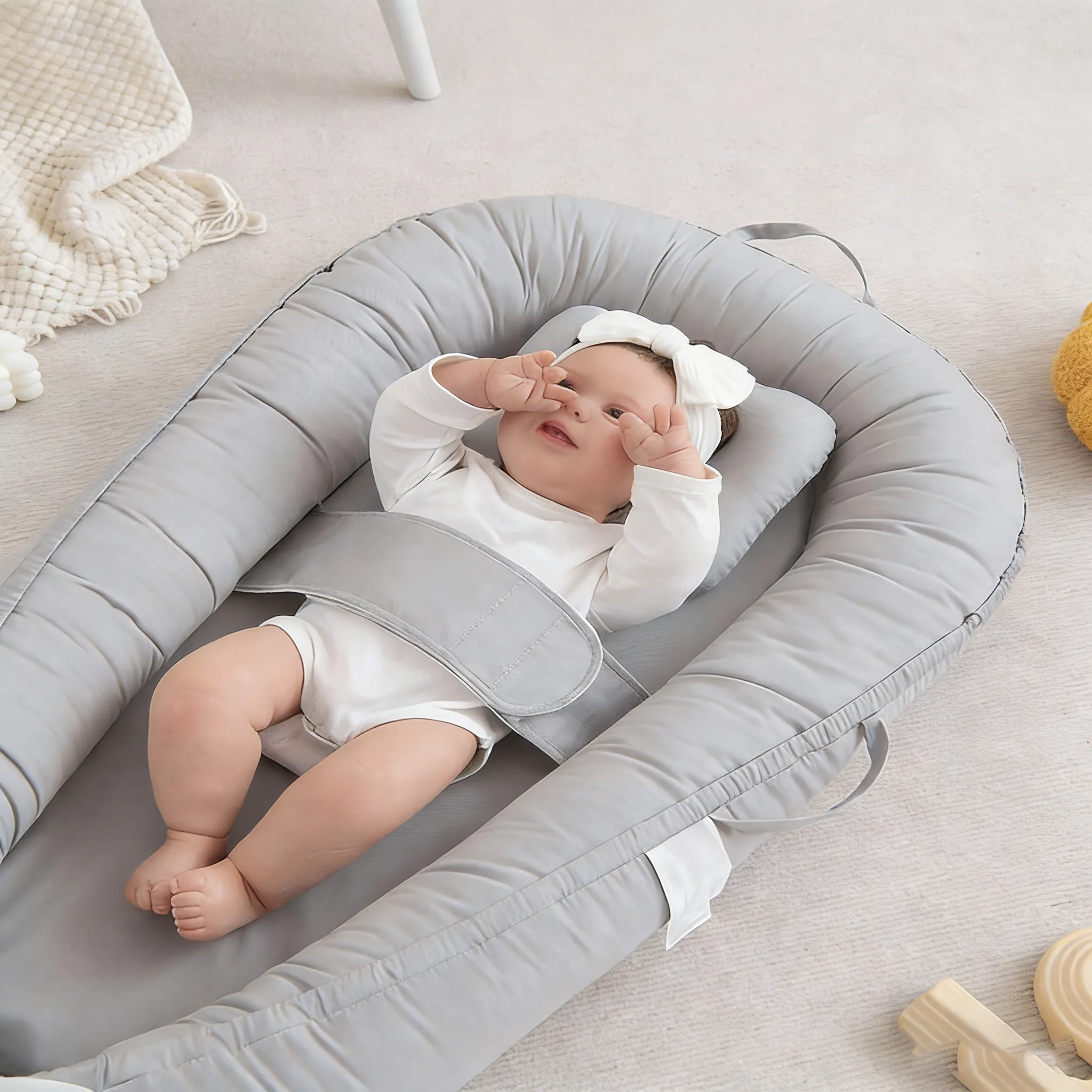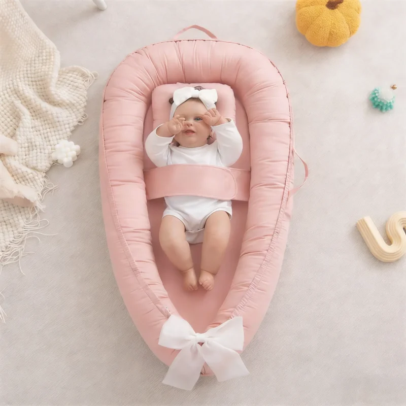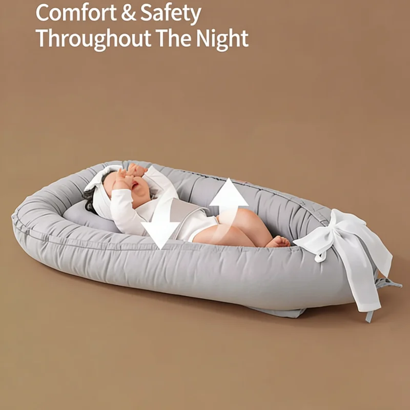 This newborn baby nest features a wrap-around wing design that gently cradles your baby, providing a sense of security. It folds easily for convenient carrying and storage.